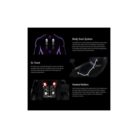 All of the chairs in this line have the same smooth deep tissue 4D roller mechanism that has become a leader in the industry. The rollers are also heated with infrared, though you don't quite feel it as much it does reach your tissues at a cellular level. If you've got problems with your neck and shoulders or even your lower lumbar, this is the chair for you. With 8 levels of intensity that are all noticably different, you're sure to find exactly what you're looking for.