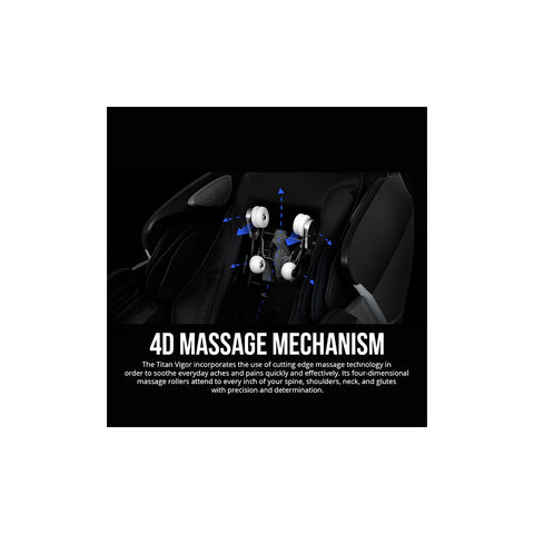 The Titan Pro Vigor 4D SL-Track Massage Chair is the newest in the Maestro family (modeled after the Maestro LE) w/ the same 8 intensity levels, famously smooth 4D SL-Track roller mechanism and reflexology foot massage & quick controls. Suitable for up to 6'3" and 275#.