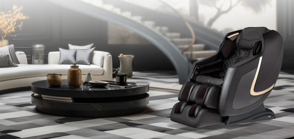 AmaMedic 3D Premium Massage Chair in Black color; lifestyle image in a fancy space from Wish Rock Relaxation