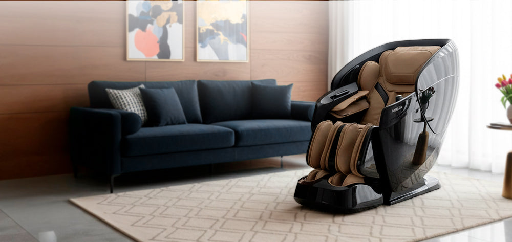 Ogawa Active XL Duo 3D + 2D Massage Chair (OG6400) in Black/Champagne placed in a luxurious living room from Wish Rock Relaxation.