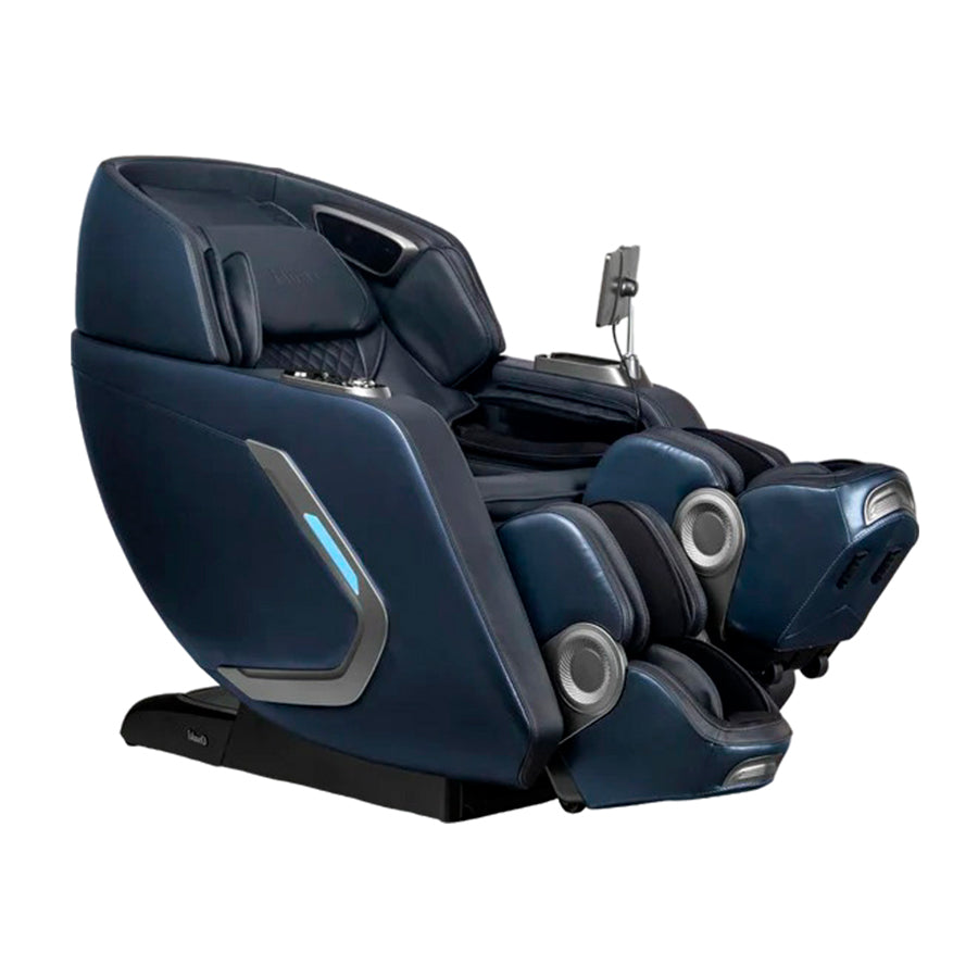 Osaki 4D + 3D Bravo Duo Flex Massage Chair in blue with touchscreen from Wish Rock Relaxation.