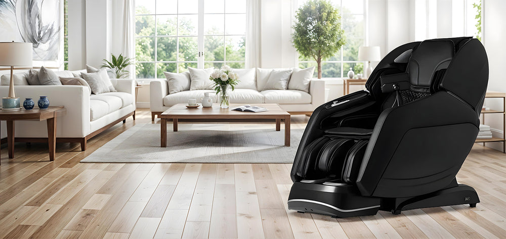 Osaki Manhattan Duo Mech 4D Massage Chair with 10" extendable footrest for those with longer legs and taller users.