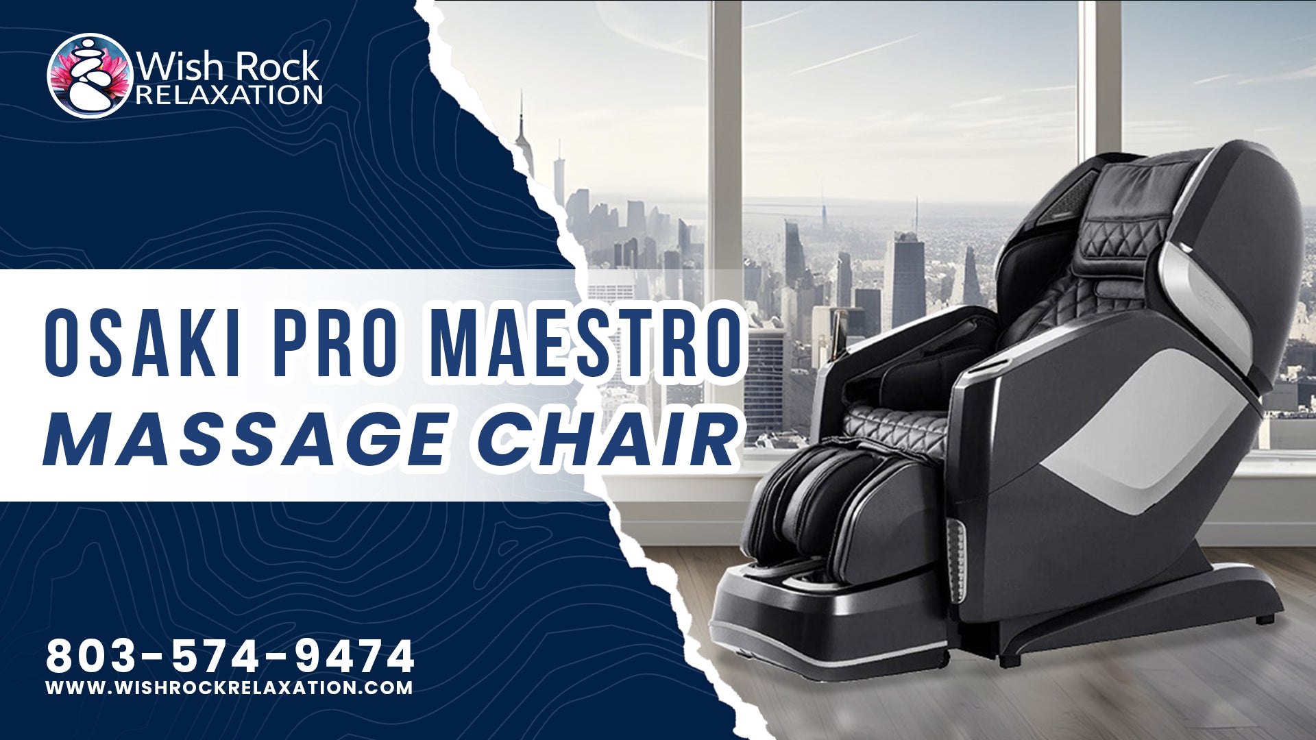 Osaki OS-4D Pro Maestro Massage Chair detailed feature infographic from Wish Rock Relaxation.